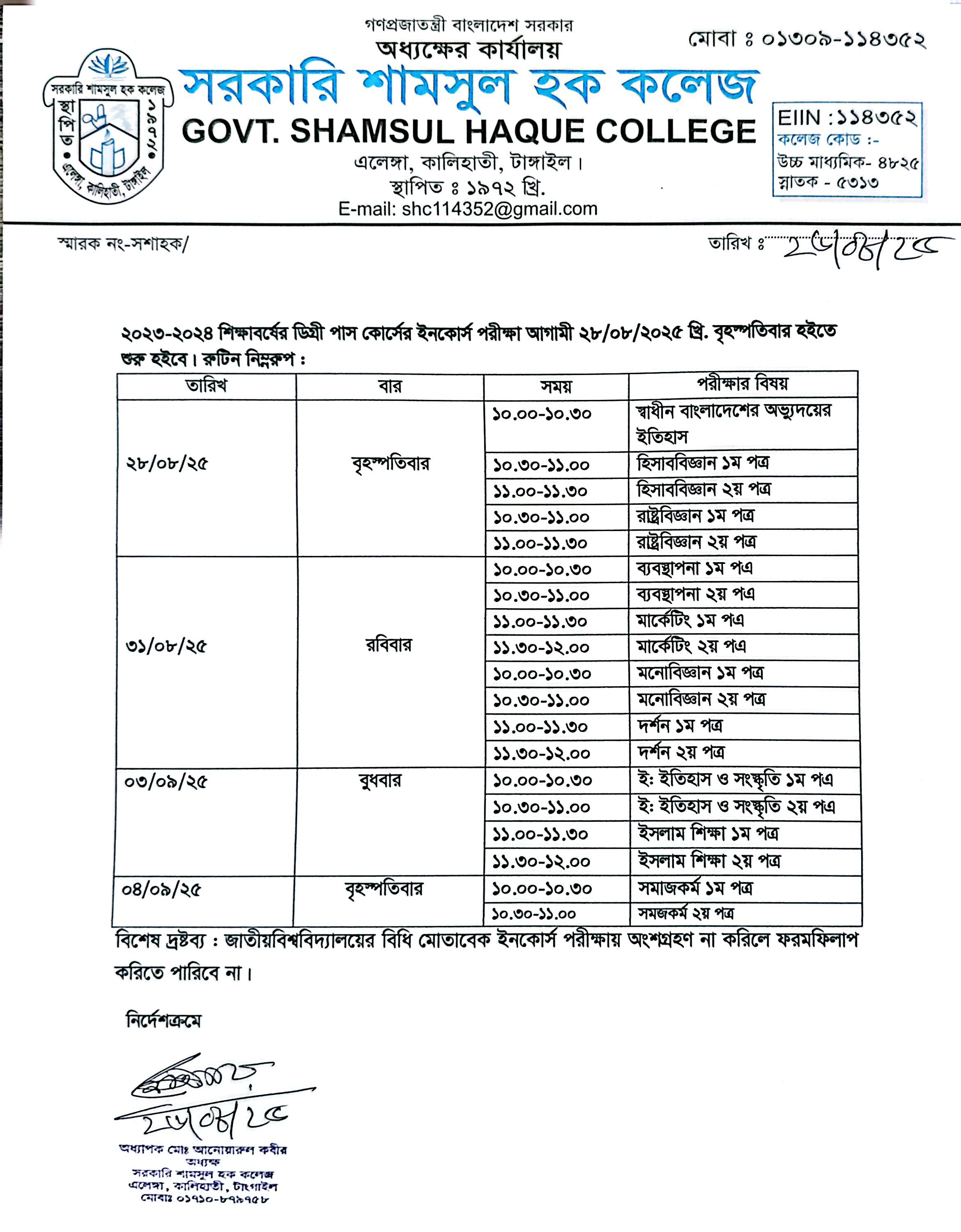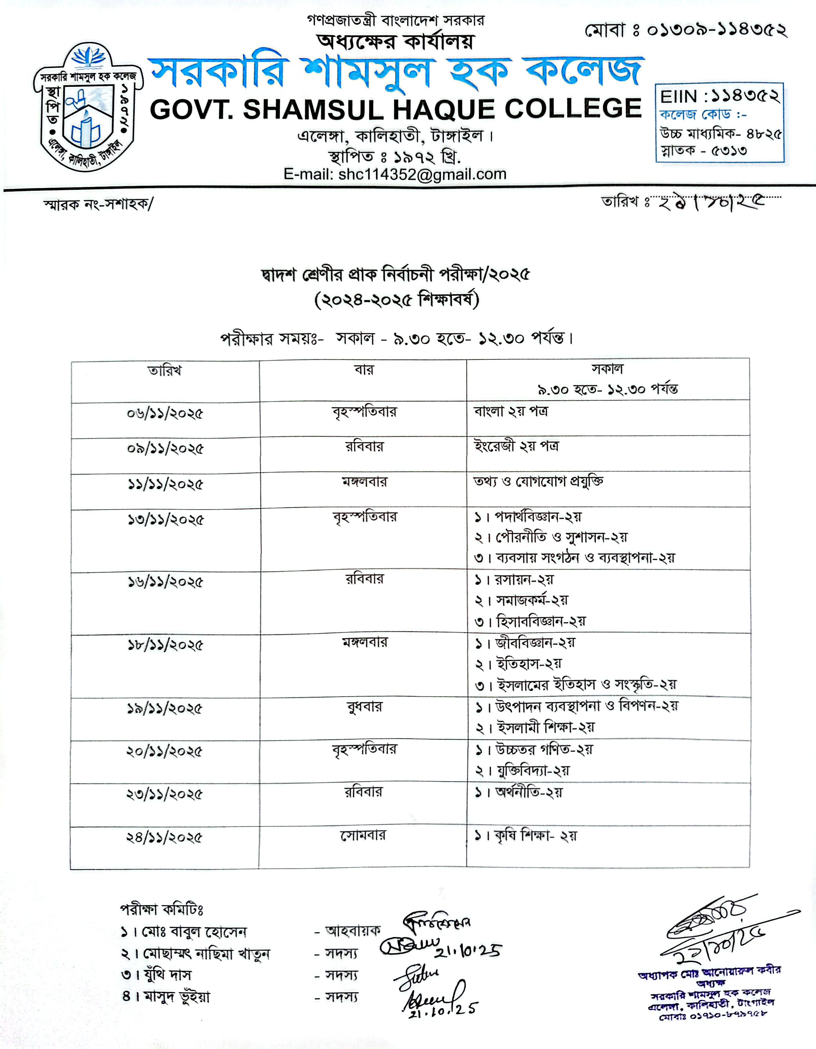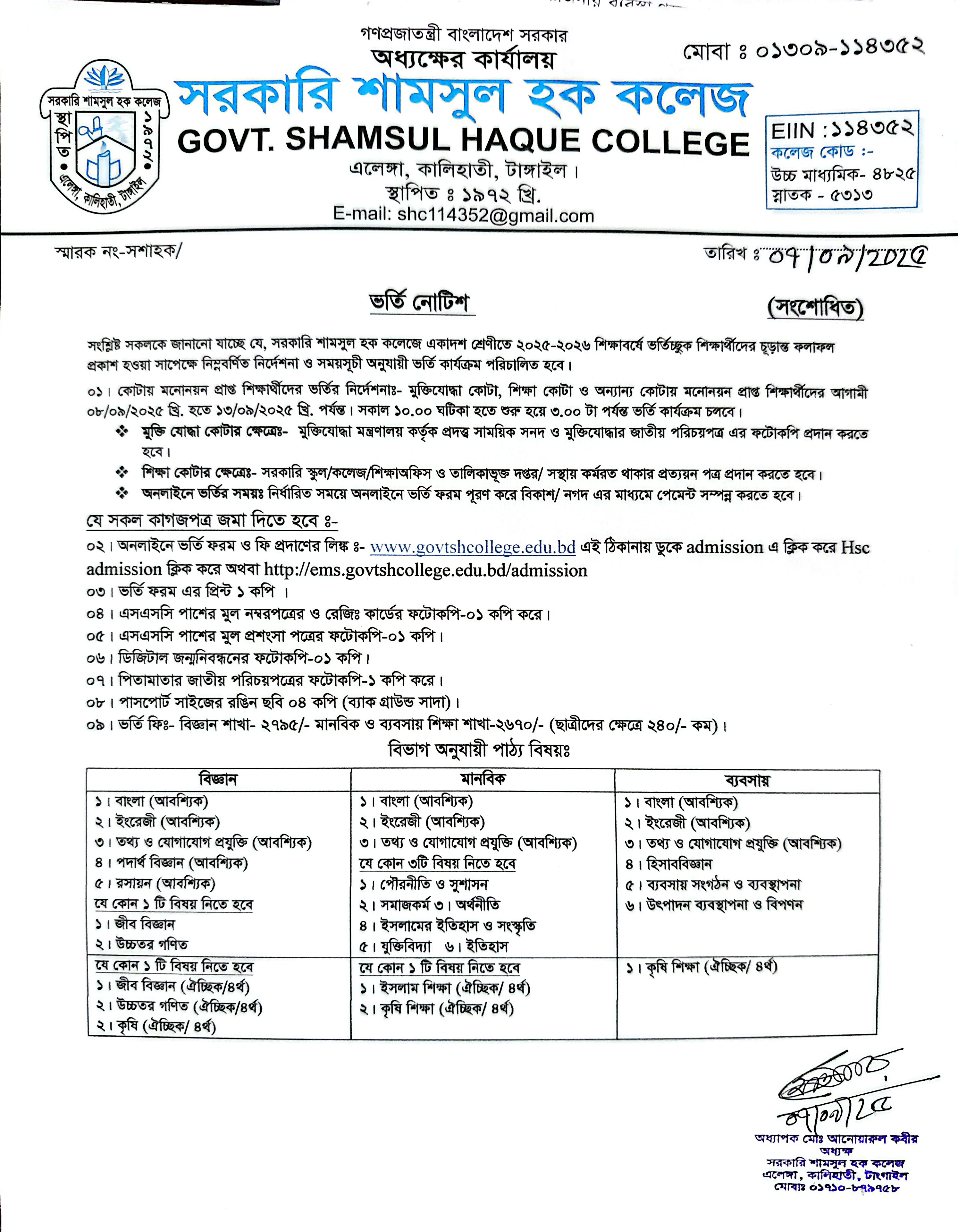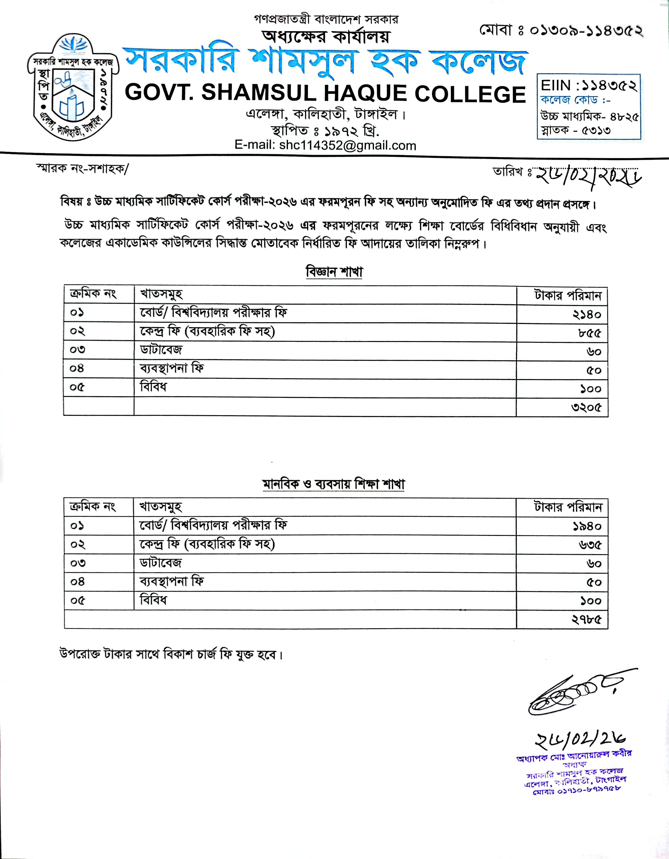 আমি সরকারি শামসুল হক কলেজের সাথে জড়িত শিক্ষক, শিক্ষার্থী, অভিভাবক ও প্রাক্তন শিক্ষার্থীদের প্রতি আন্তরিক শুভেচ্ছা জানাই। আমরা সবাই মিলে এই প্রতিষ্ঠানের সুনাম ও গৌরব আরও সমুন্নত রাখব—এটাই আমার প্রত্যাশা।